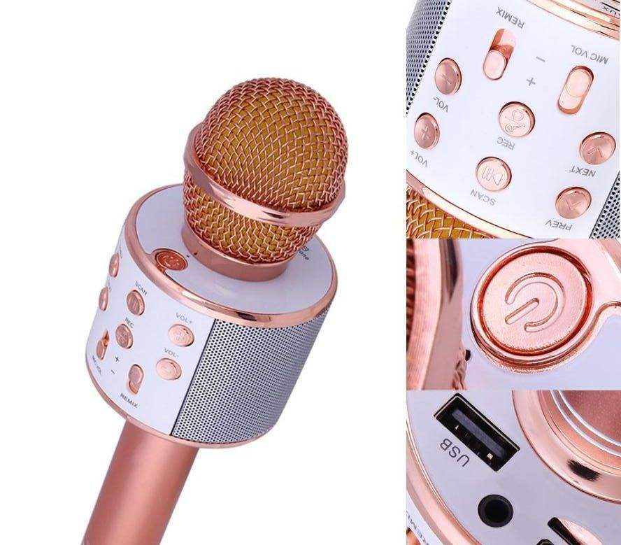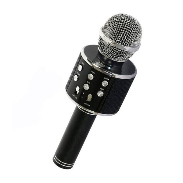 میکروفون اسپیکر مدل WS-858 یک میکروفون همه کاره با قابلیت اتصال بی سیم (بلوتوثی) و باسیم به تلفن های هوشمند اندروید و IOS ، انواع پلیرها و کامپیوتر می باشد. این دستگاه از جنس بهترین مواد ABS و آلومینیوم ساخته شده است . به طور خلاصه می توان امکانات این میکروفون را به این صورت نام برد: بلوتوث نسخه 3, ,ورودی حافظه فلش یا USB ، شیار مخصوص به کارت حافظه، دارای پورت AUX، باتری لیتیومی قابل شارژ ، رادیو، دکمه های تنظیم صدا، ضبط صدا، کارائوکه، 4 حالت تغییر صدا , اسپیکر های قدرتمند و ....